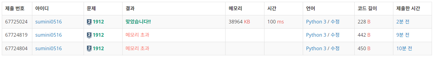 이차원 배열로 풀었는데, 메모리 초과가 두번이나 나서 일차원 배열을 사용해야함을 깨달았다.
