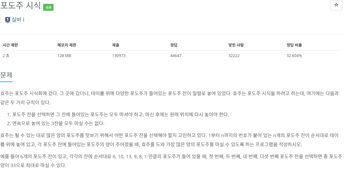 https://www.acmicpc.net/problem/2156