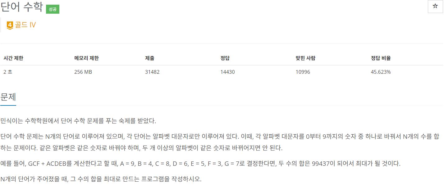 https://www.acmicpc.net/problem/1339